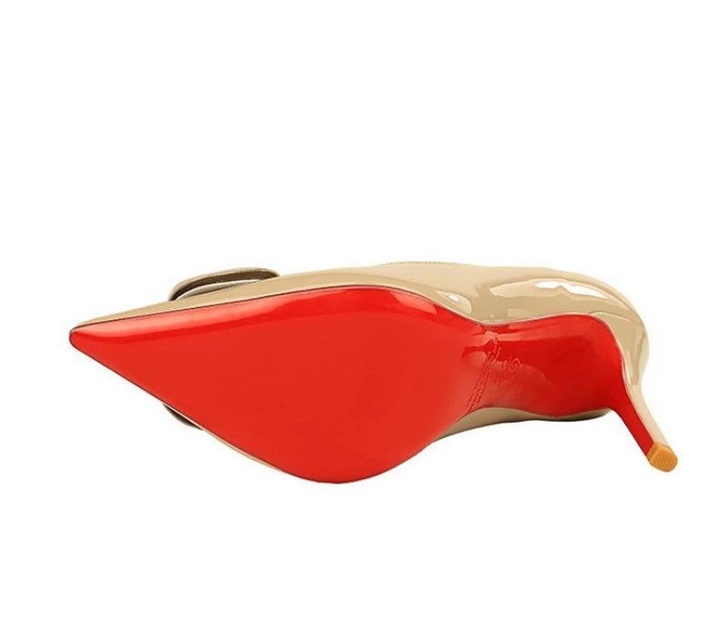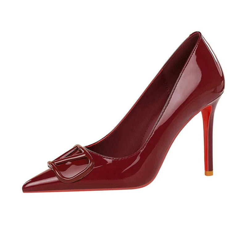 European And American Style Banquet Temperament Pointed Toe High Heels Single Shoes Patent Leather V-Buckle Sexy Women's Shoes